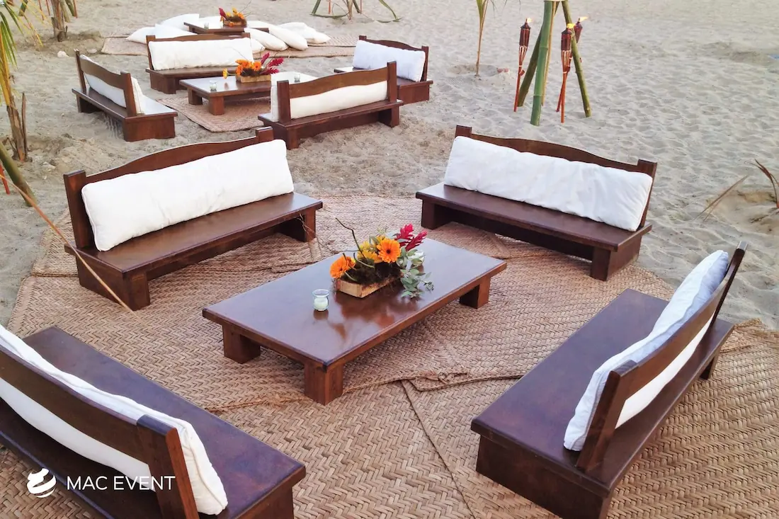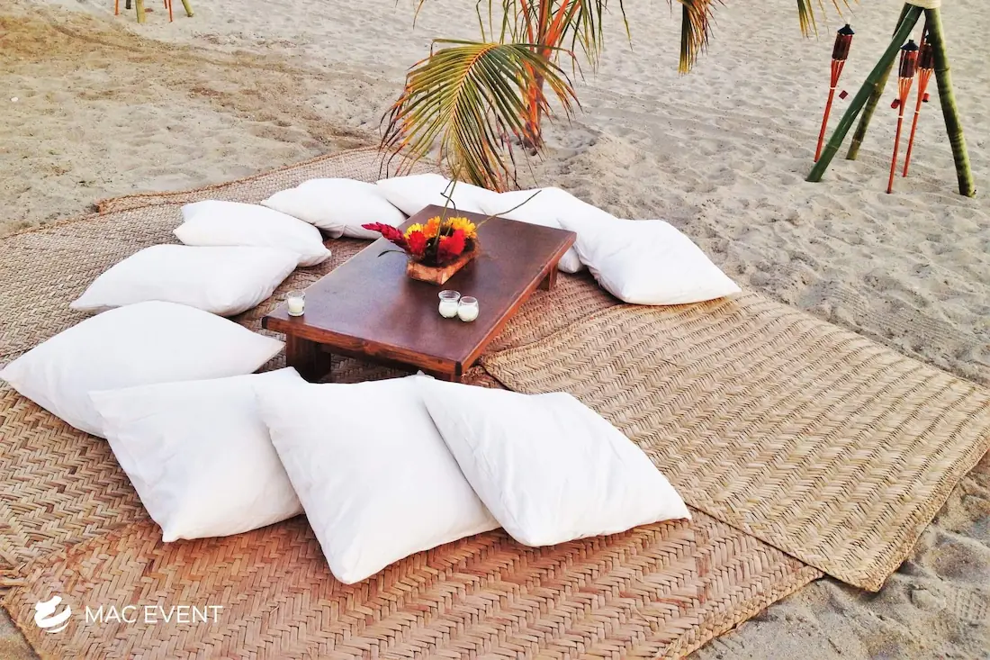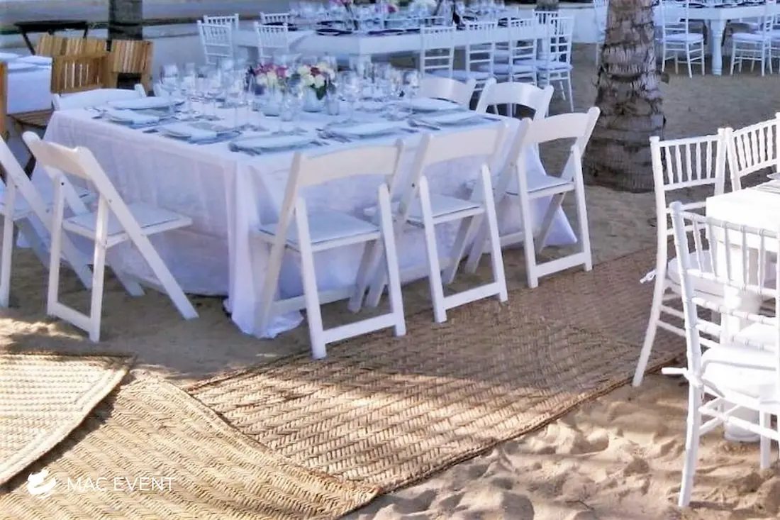 The petate mat adds a touch of authentic Mexican tradition to weddings, beach parties, and corporate events in Guaymas. Woven from natural palm fibers, this event décor rental brings texture, warmth, and cultural charm to your setup. Perfect for picnic lounges, rustic themes, or boho-inspired spaces, the petate mat serves as a stylish base for floor seating, decorative accents, or display areas. Renting petate mats in Guaymas allows you to create organic and inviting environments that reflect local craftsmanship. For a natural and culturally rich detail, the petate mat is a beautiful addition to any event.
